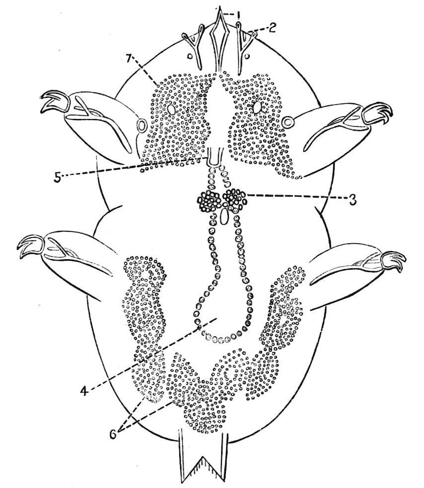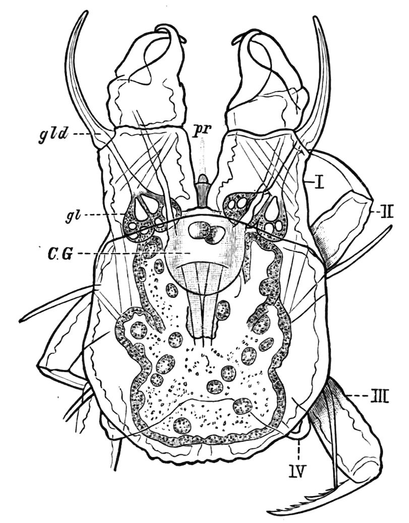 427. Cf. Oudemans, Tijdschr. d. Ned. Dierk. Ver. (2), i., 1886, p. 41: “Jedermann weiss nun, dass diese Tiere eine ganz besondere Urgruppe bilden, ohne alle Verwandschaft mit irgend einer anderen Arthropodengruppe.”