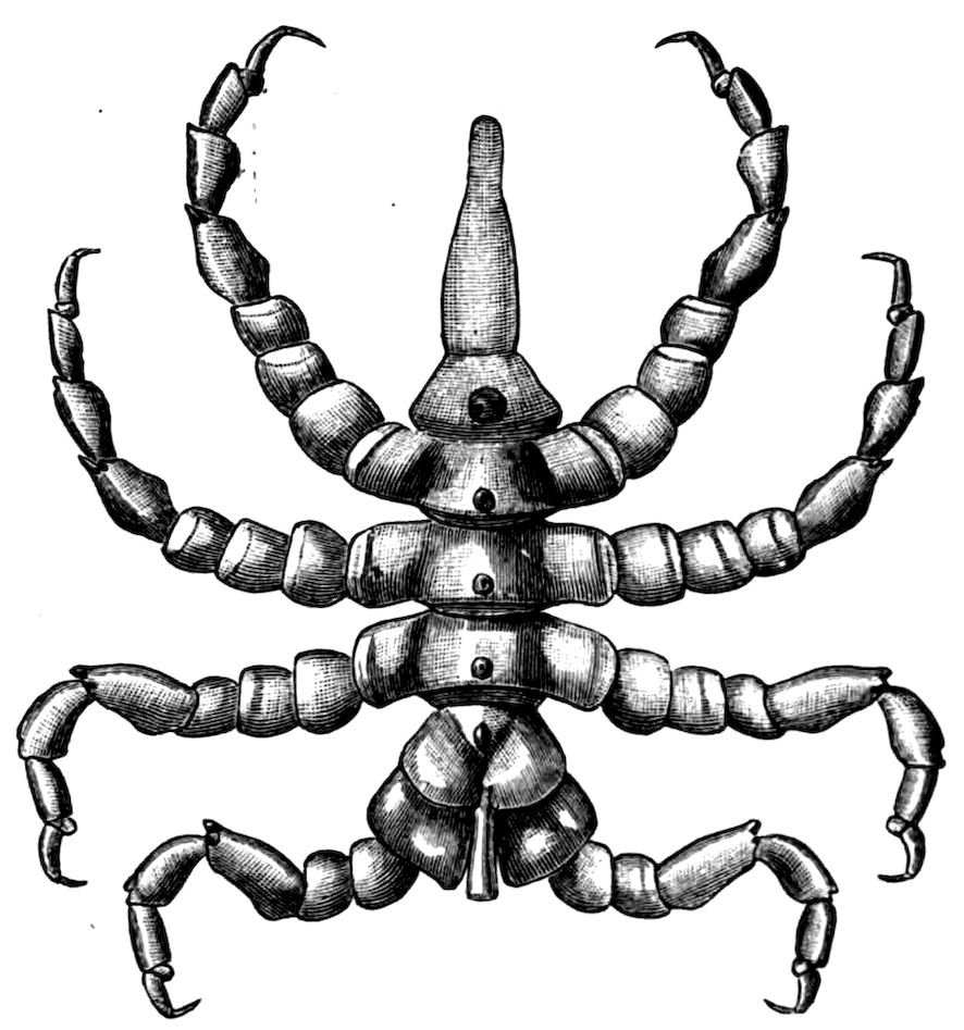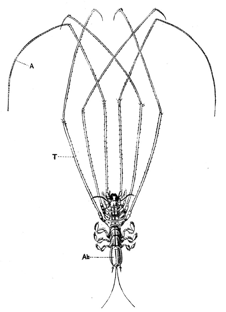 393. Pycnogonides, Latreille, 1804; Podosomata, Leach, 1815; Pychnogonides ou Crustacés aranéiformes, Milne-Edwards, 1834; Crustacea Haustellata, Johnston, 1837; Pantopoda, Gerstaecker, 1863.