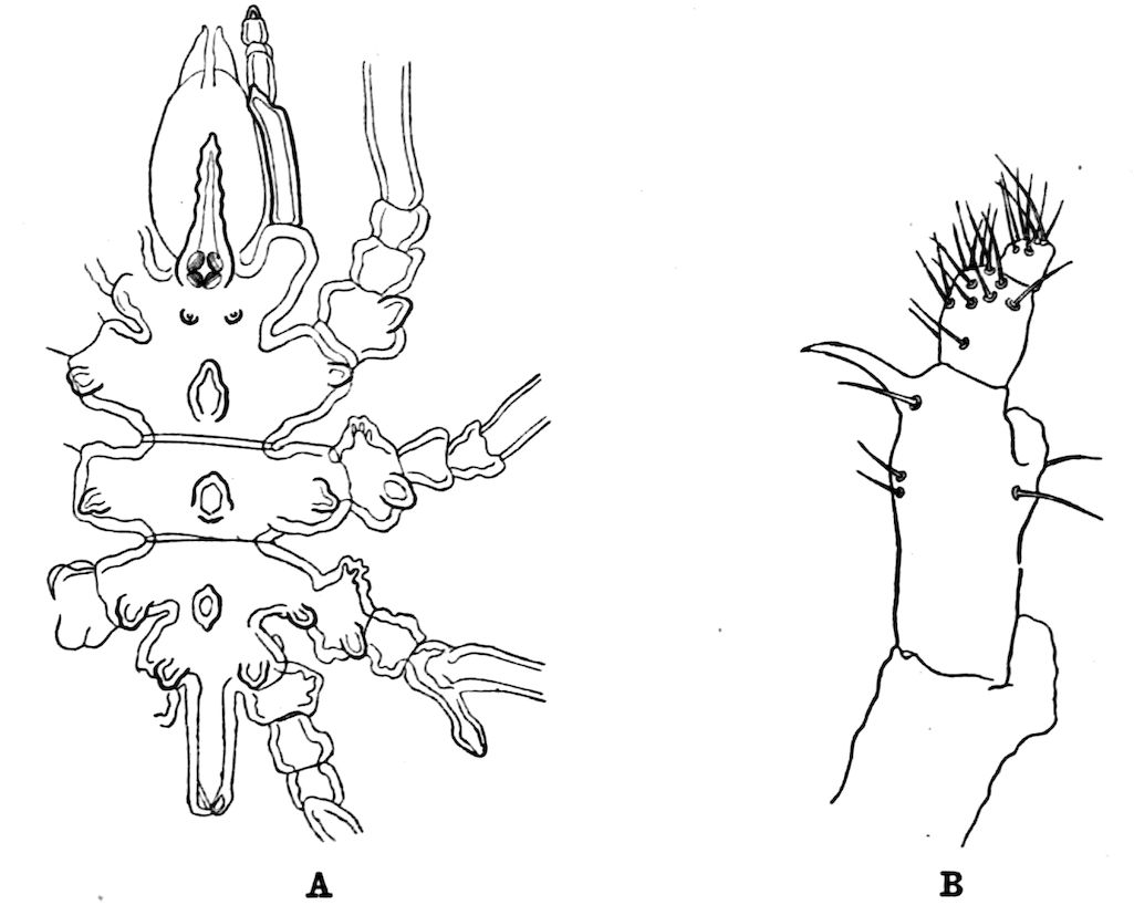 407. In the second joint in Ascorhynchus abyssi, Sars, and A. tridens, Meinert.