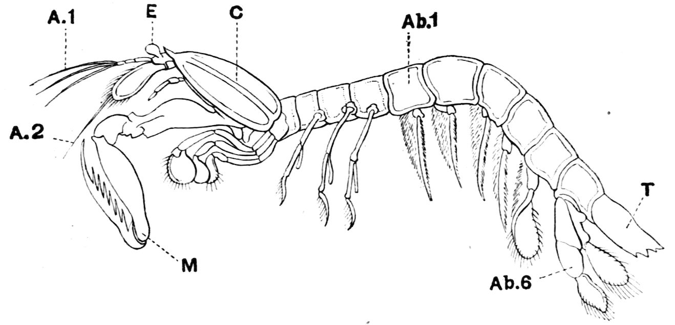 | Malacostraca: Leptostraca—Phyllocarida: Eumalacostraca: Syncarida—Anaspidacea: Peracarida—Mysidacea—Cumacea—Isopoda—Amphipoda: Hoplocarida—Stomatopoda | 110 |