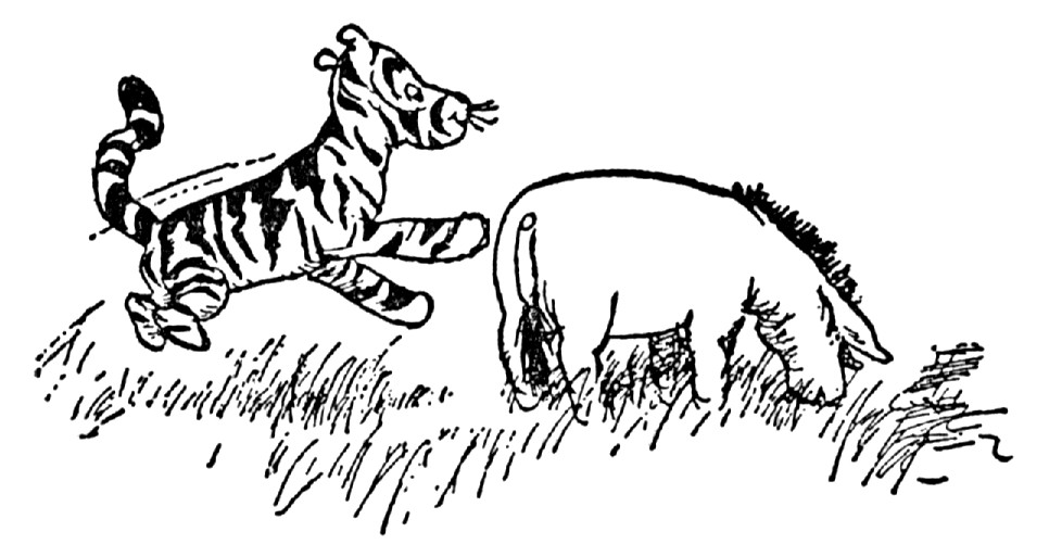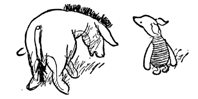 "What is it, Eeyore?" asked Christopher Robin. Eeyore swished his tail from side to side, so as to encourage himself, and began.