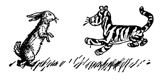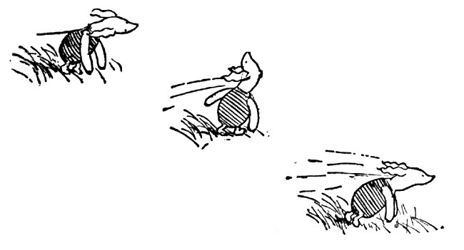 But first he thought that he would knock very loudly just to make quite sure ... and while he waited for Piglet not to answer, he jumped up and down to keep warm, and a hum came suddenly into his head, which seemed to him a Good Hum, such as is Hummed Hopefully to Others.