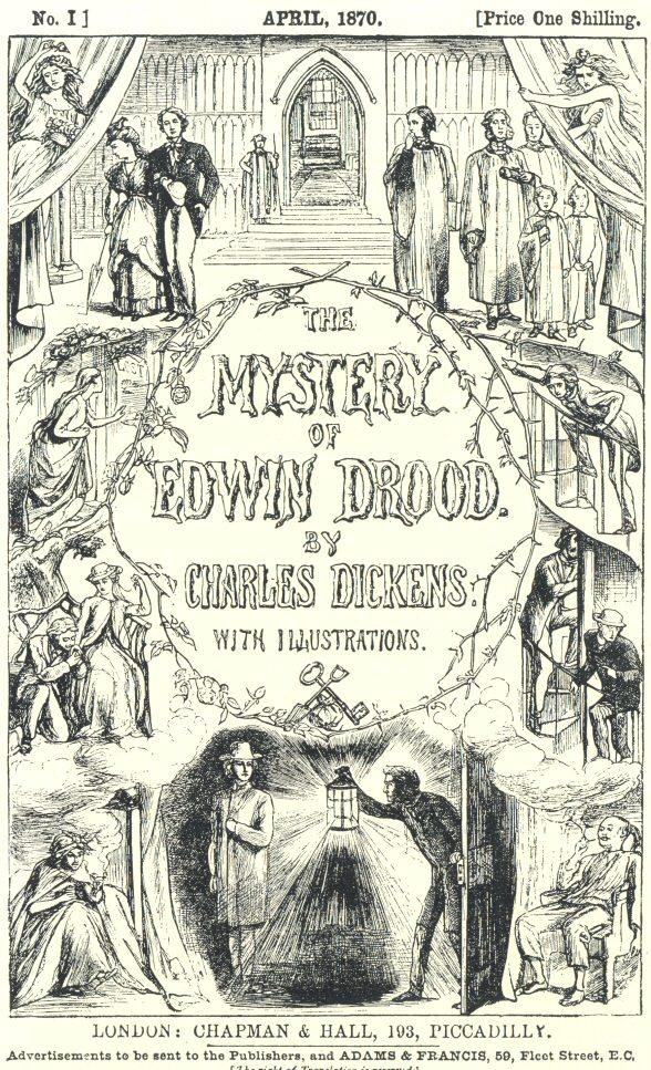 According to my theory, which mainly rests on the unmistakable evidence of the cover drawn by Collins under Dickens’s directions, all “ends well.” Jasper comes to the grief he deserves: Helena, after her period of mourning for Neville, marries Crisparkle: Rosa weds her mariner. Edwin, at twenty-one, is not heart-broken, but, a greatly improved character, takes, to quote his own words, “a sensible interest in works of engineering skill, especially when they are to change the whole condition of an undeveloped country”—Egypt.