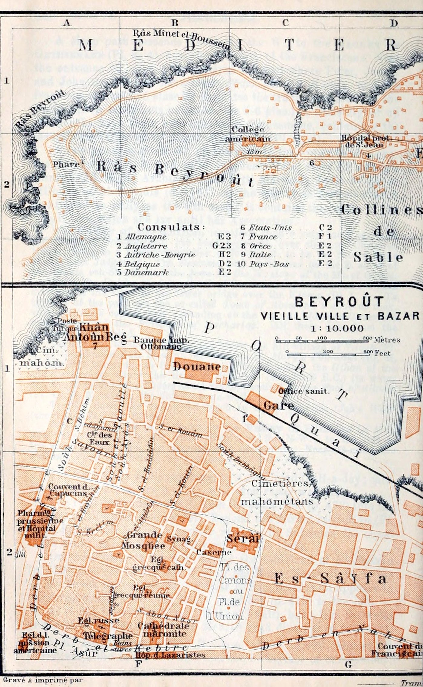 From the custom-house we turn to the left to the Market Place with its clock-tower. A well-paved street leads thence to the Banque Ottomane. Farther to the E., on the shore, are the Seraï (see p. 483) and several Consulates. The attractive Villa Quarter, occupied by Armenian and Greek merchants, conveys an impression of great prosperity.