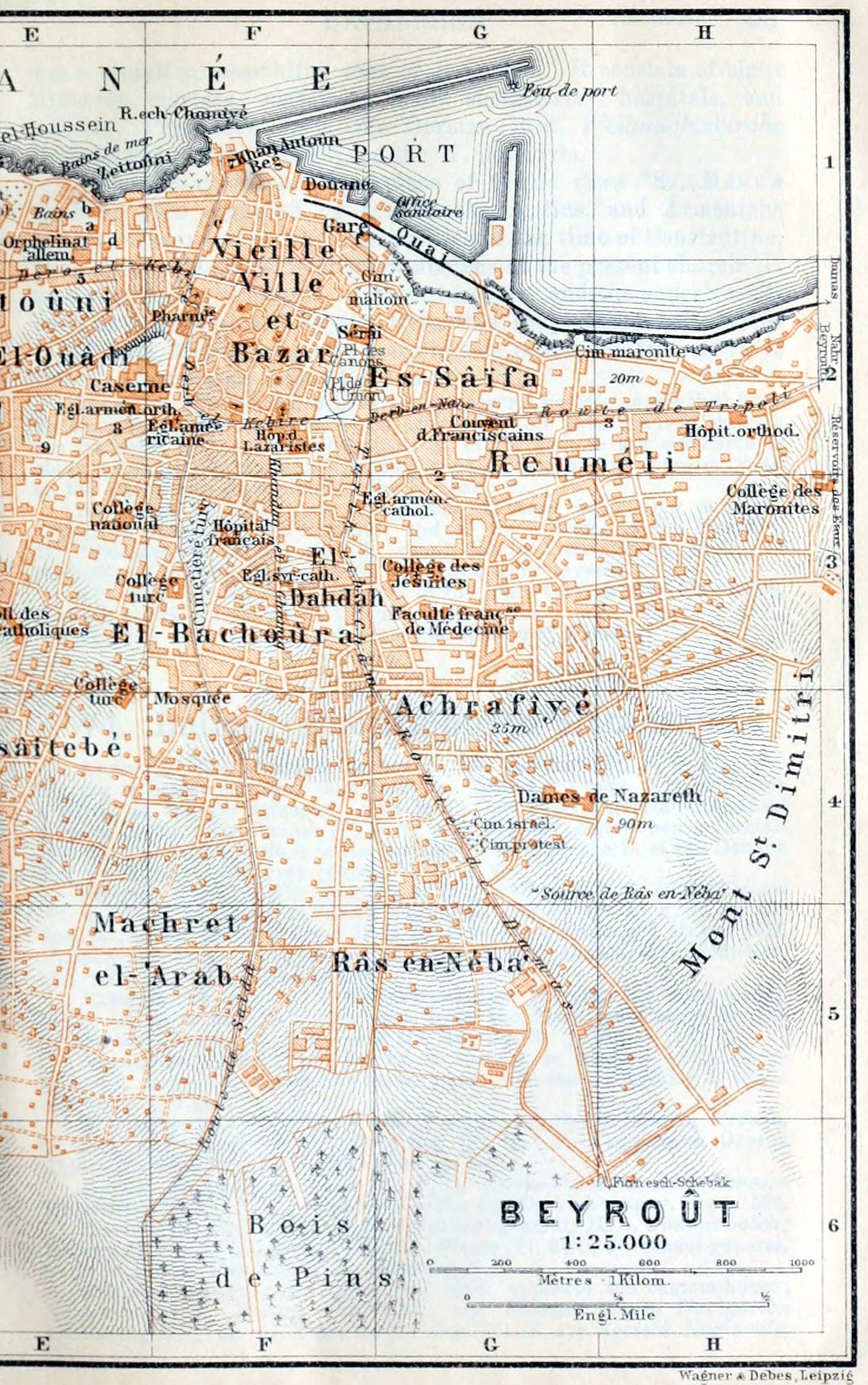 Opposite the New Mole (Pl. E, 4) is a massive Flight of Granite Steps (193 in number) ascending to the level of the town. It is adjoined by a wire-rope elevator (3 or 2 cop.).