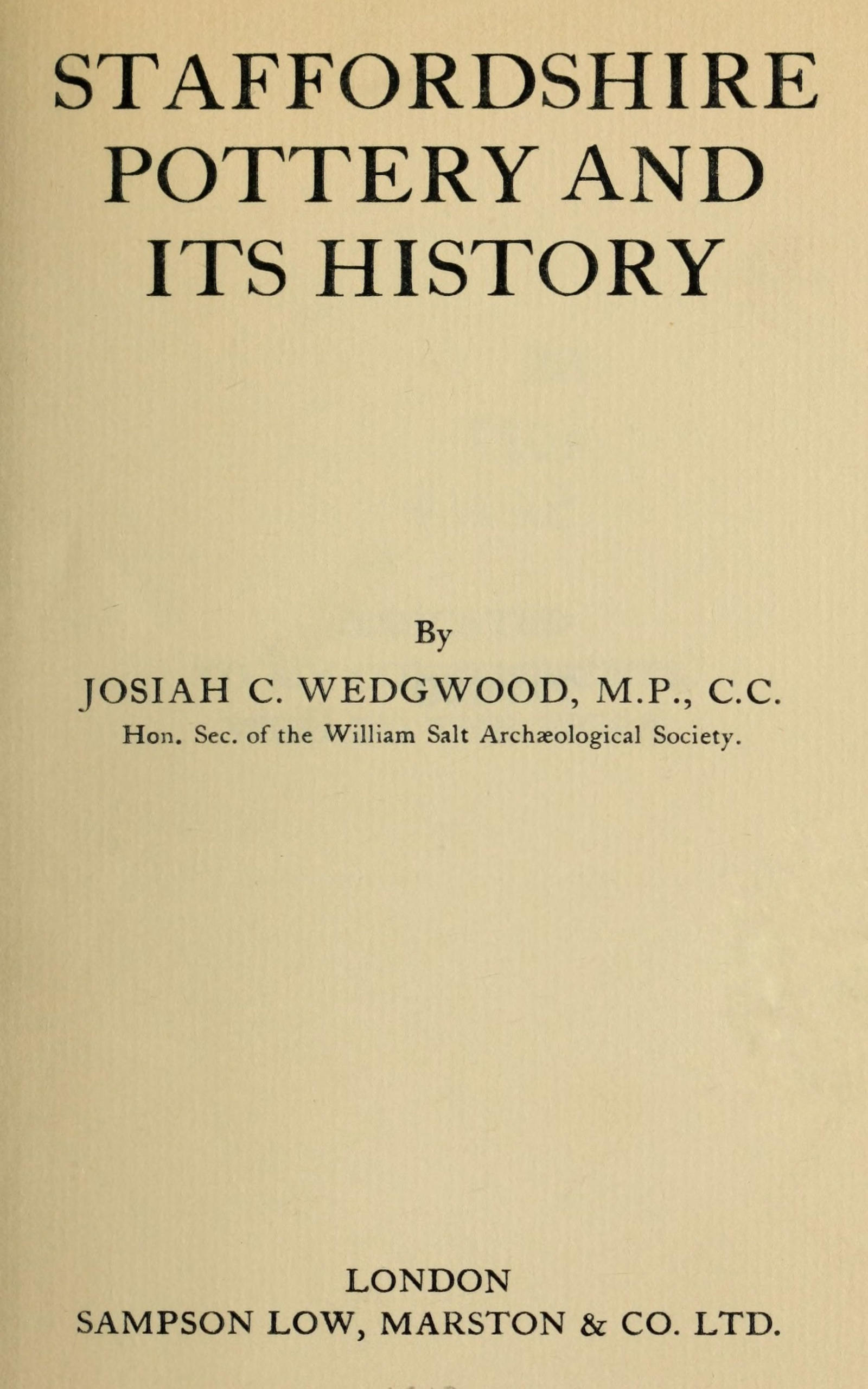 Both to him and to Professor Church, M. Solon[xi] and to many others, who have given me so much personal assistance in this work, I desire to express my gratitude. I can only regret that my own contribution to original research on the subject has been confined to the Tunstall Court Rolls, kindly lent me by Mr Sneyd, and to the MSS of my great-great-grandfather, Josiah Wedgwood, now in the museum of the Wedgwood firm at Etruria. Lastly I would express my indebtedness to my brother Frank Wedgwood, who has read through the proofs and made many corrections, such as would occur to one whose whole life has been devoted to the practice of the art of potting.