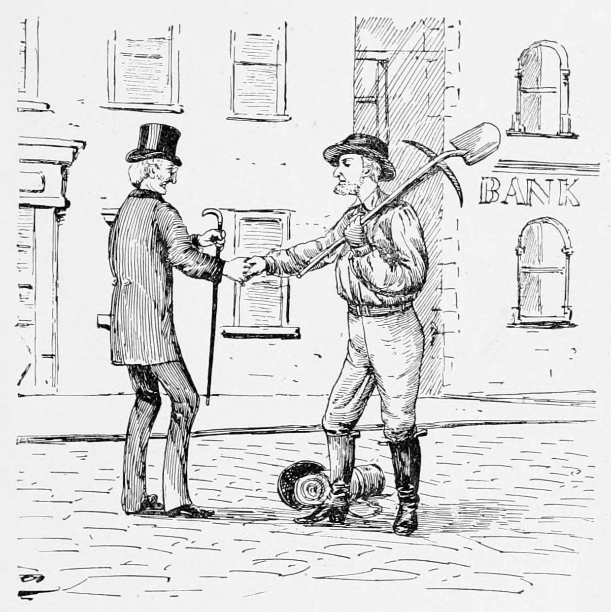 “Oh, yes, I know. The gold is thrown out from the bowels of the earth, where it’s manufactured, by the volcanoes and scattered about on the tops of the mountains. Then along come the earthquakes and shake it down among the grass roots and bushes in the valleys, where you expect to scrape it up by the bushel.”