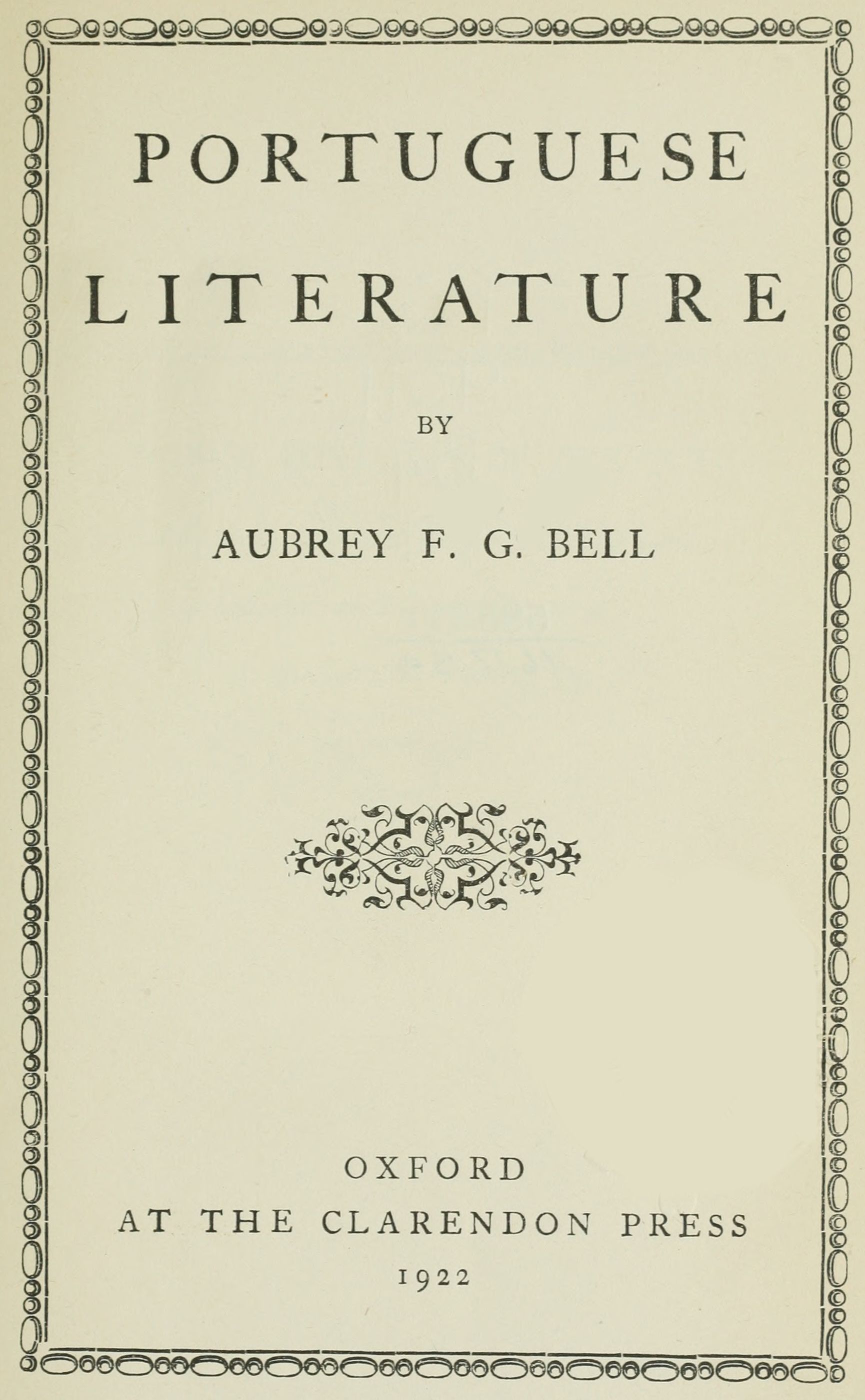 The only completely methodical history of Portuguese literature in existence is the brief manual by the learned ex-Rector of Coimbra University, Dr. Joaquim Mendes dos Remedios: História da Literatura Portuguêsa (5th ed., Coimbra, 1921), since it contains that rarity in Portuguese literature: an index.[11] Dr. Figueiredo published a short essay in its general bibliography in 1914 (Bibliographia portuguesa de critica litteraria), largely increased in a new (1920) edition, but otherwise little has been done in this respect (apart from a few special authors). The bibliography attached to the present book[12] follows—longo intervallo—the lines of Professor James Fitzmaurice-Kelly’s Bibliographie de l’Histoire de la Littérature Espagnole (Paris, 1913). After its proved excellence it would, indeed, have been folly to adopt any other method.