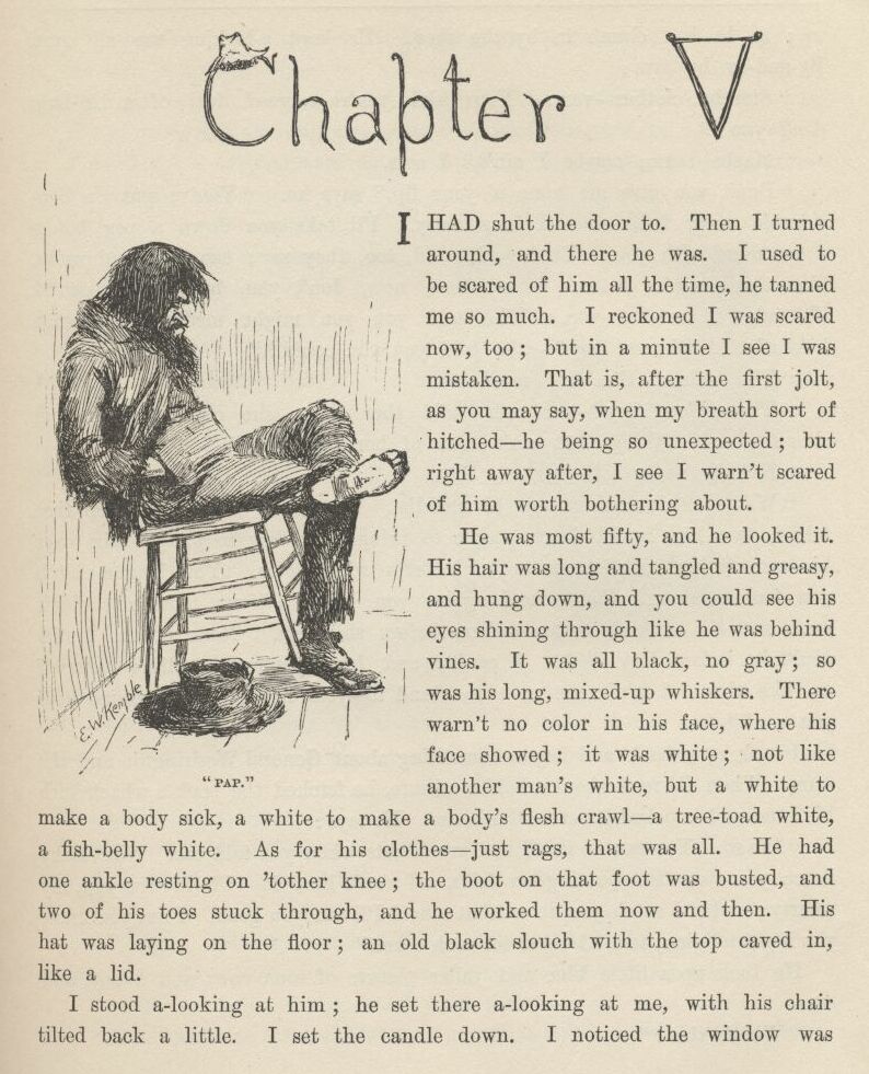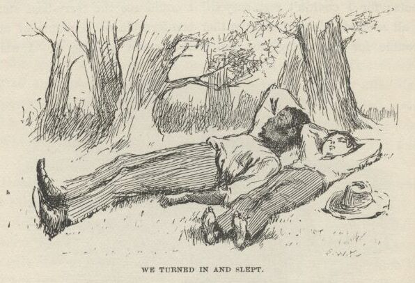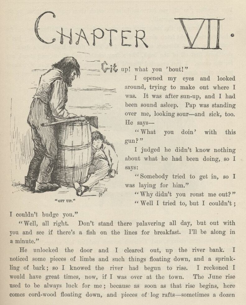 And then Tom he talked along and talked along, and says, le’s all three slide out of here one of these nights and get an outfit, and go for howling adventures amongst the Injuns, over in the Territory, for a couple of weeks or two; and I says, all right, that suits me, but I ain’t got no money for to buy the outfit, and I reckon I couldn’t get none from home, because it’s likely pap’s been back before now, and got it all away from Judge Thatcher and drunk it up.