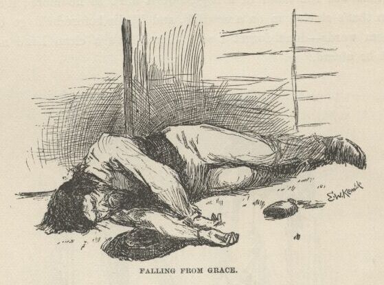 And Tom he turned his head a little, and muttered something or other, which showed he warn’t in his right mind; then she flung up her hands, and says: