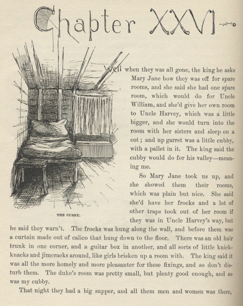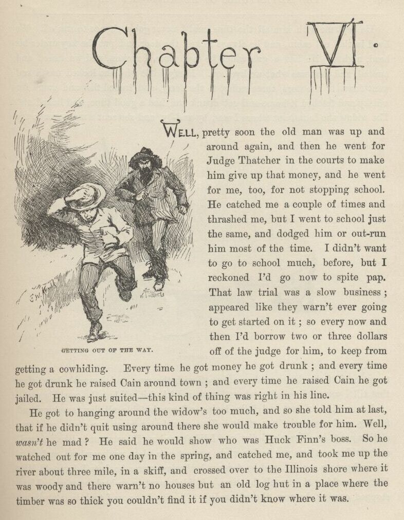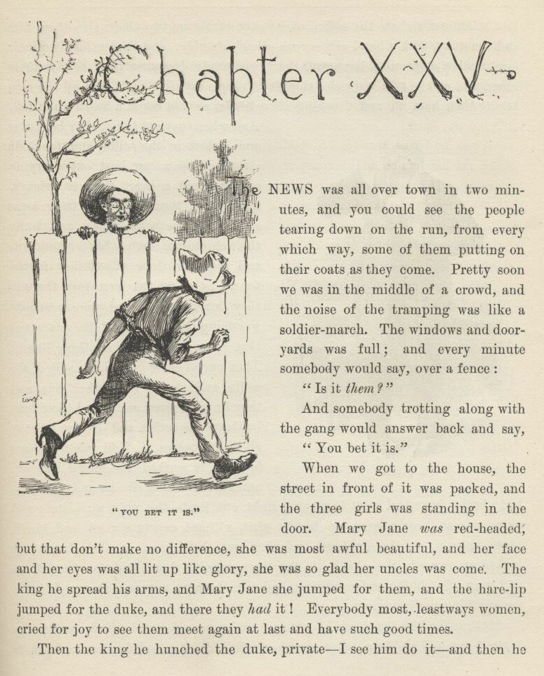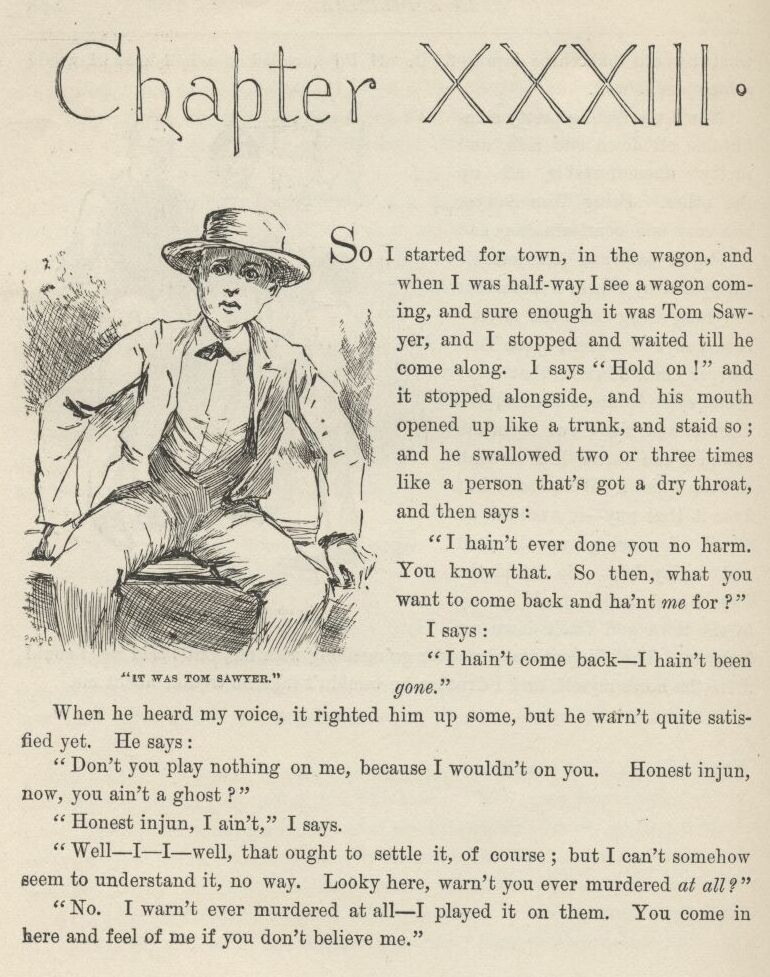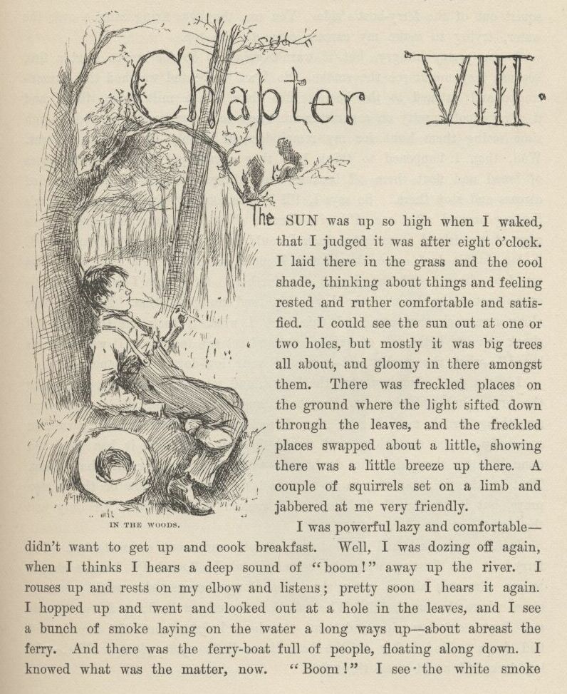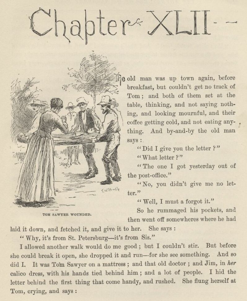 Tom’s most well now, and got his bullet around his neck on a watch-guard for a watch, and is always seeing what time it is, and so there ain’t nothing more to write about, and I am rotten glad of it, because if I’d a knowed what a trouble it was to make a book I wouldn’t a tackled it, and ain’t a-going to no more. But I reckon I got to light out for the Territory ahead of the rest, because Aunt Sally she’s going to adopt me and sivilize me, and I can’t stand it. I been there before.