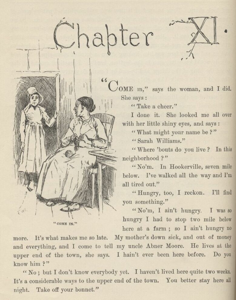 “Look at that, now! I might have expected it, letting him go off that way without anybody to watch him. So now I got to go and trapse all the way down the river, eleven hundred mile, and find out what that creetur’s up to this time; as long as I couldn’t seem to get any answer out of you about it.”