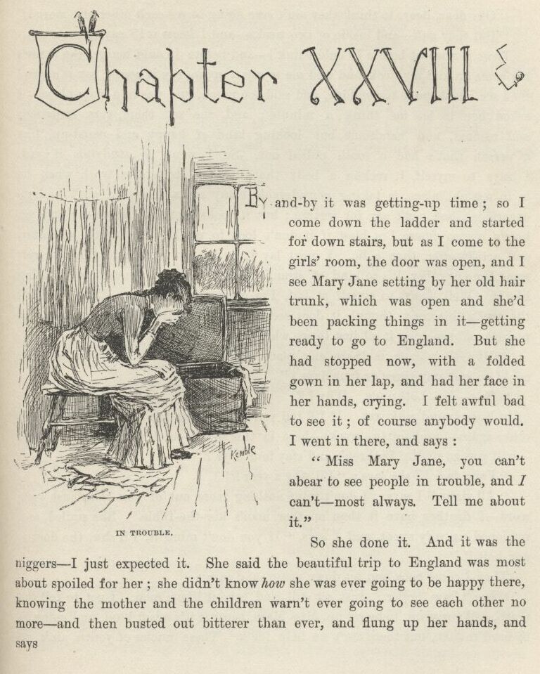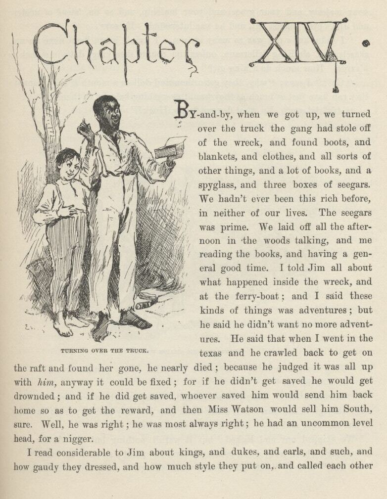 And his Aunt Polly she said Tom was right about old Miss Watson setting Jim free in her will; and so, sure enough, Tom Sawyer had gone and took all that trouble and bother to set a free nigger free! and I couldn’t ever understand before, until that minute and that talk, how he could help a body set a nigger free with his bringing-up.