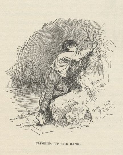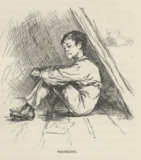 Says I to myself, I can explain better how we come to not be in that room this morning if I go out to one side and study over it a little. So I done it. But I dasn’t go fur, or she’d a sent for me. And when it was late in the day the people all went, and then I come in and told her the noise and shooting waked up me and “Sid,” and the door was locked, and we wanted to see the fun, so we went down the lightning-rod, and both of us got hurt a little, and we didn’t never want to try that no more. And then I went on and told her all what I told Uncle Silas before; and then she said she’d forgive us, and maybe it was all right enough anyway, and about what a body might expect of boys, for all boys was a pretty harum-scarum lot as fur as she could see; and so, as long as no harm hadn’t come of it, she judged she better put in her time being grateful we was alive and well and she had us still, stead of fretting over what was past and done. So then she kissed me, and patted me on the head, and dropped into a kind of a brown study; and pretty soon jumps up, and says: