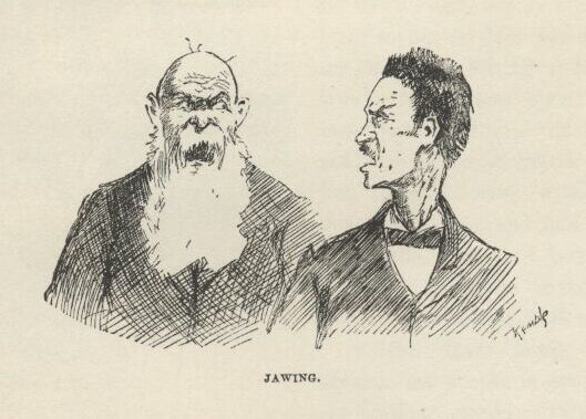 But Tom, he was so proud and joyful, he just couldn’t hold in, and his tongue just went it—she a-chipping in, and spitting fire all along, and both of them going it at once, like a cat convention; and she says: