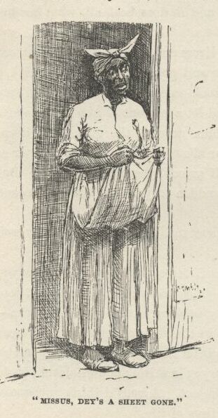 “He’s alive, thank God! And that’s enough!” and she snatched a kiss of him, and flew for the house to get the bed ready, and scattering orders right and left at the niggers and everybody else, as fast as her tongue could go, every jump of the way.