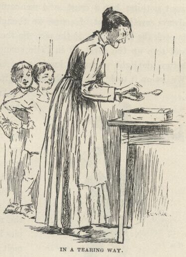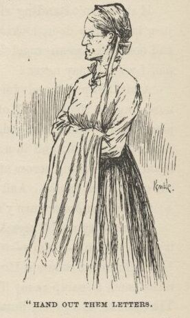 “Don’t you what me, you impudent thing—hand out them letters.”