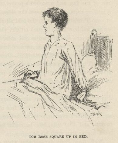 Tom rose square up in bed, with his eye hot, and his nostrils opening and shutting like gills, and sings out to me: