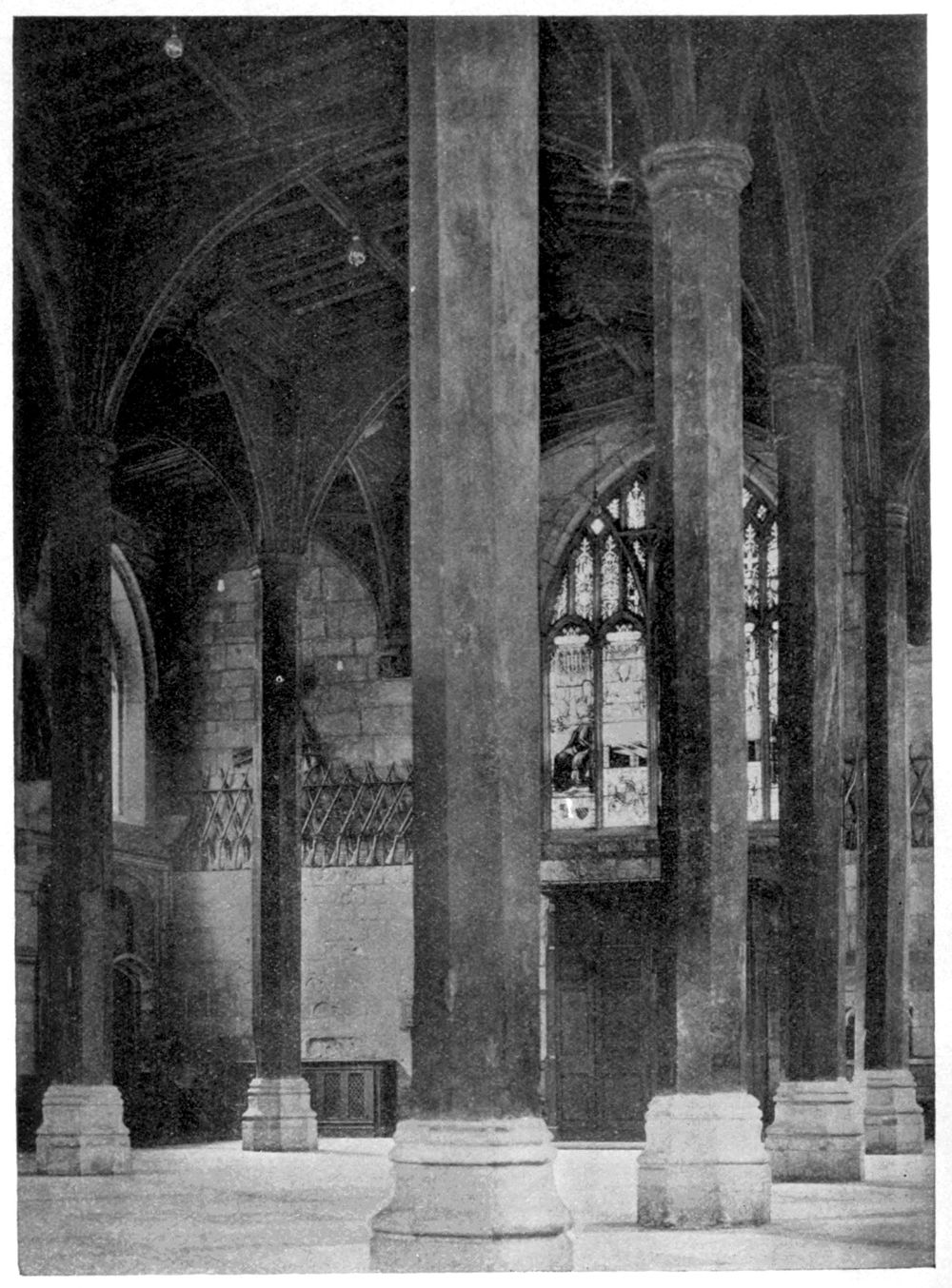 The period of the greatest architectural activity of the friars may be dated to the last quarter of the thirteenth [249]and the first quarter of the fourteenth centuries, or, roughly, to the reigns of the first two Edwards, and by about the middle of this period they had evolved a type of church which for its purpose was as nearly perfect as experience and experiment could make it. The comfort of the largest congregation was secured by an ample floor-space, while the heavy piers of the older buildings had given way to the [250]lofty and slender columns of the Austin Friars at London, only just large enough for structural stability and leaving an almost uninterrupted view of the preacher from all parts of the church.