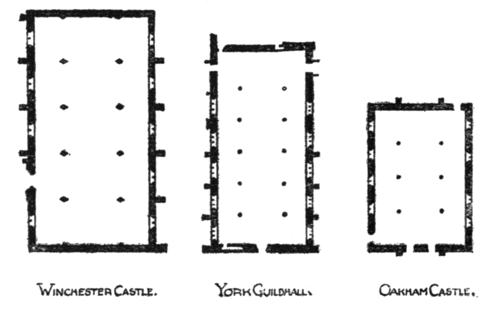 | 25. | Plans of Halls of Winchester Castle, York Guildhall, and Oakham Castle—drawn by A. W. Clapham | 72 | |