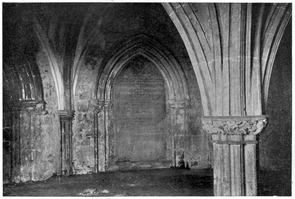 Beyond this our information is uncertain; it is impossible to locate the infirmary, and such names as “the Court Place,” “the Brewhouse,” and the “Mill House” can only be approximately referred to any given locality. It is to be feared that little further information is likely to come to light unless some extensive rebuilding takes place upon the site. With the means at our disposal, however, the main [267]buildings have been identified, although the little vaulted cellar under the prior’s house and the nameless grave in the nave now filled with concrete are the only existing relics of the great convent that stood for three hundred years upon the Strand of the Thames between Temple Garden and St. Bride’s Church.