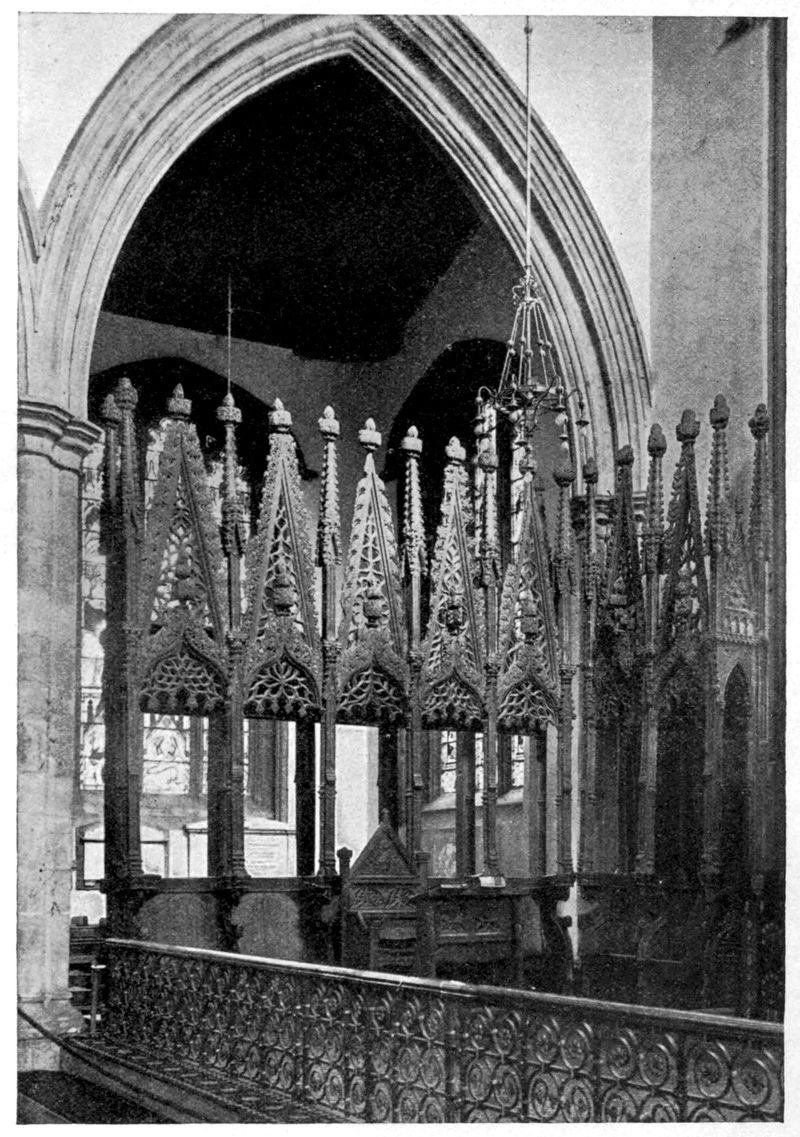 Once the new idea had taken root under royal patronage it rapidly spread over England, and in the next century some even of the old town churches were rebuilt in the then prevailing style, and it is perhaps not too much to say that the great Perpendicular parish church, of which there are so many noble examples, is the direct outcome and lineal [255]descendant of the friars’ buildings, which have unfortunately so nearly disappeared.