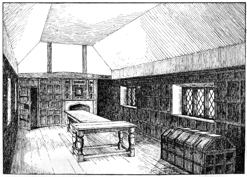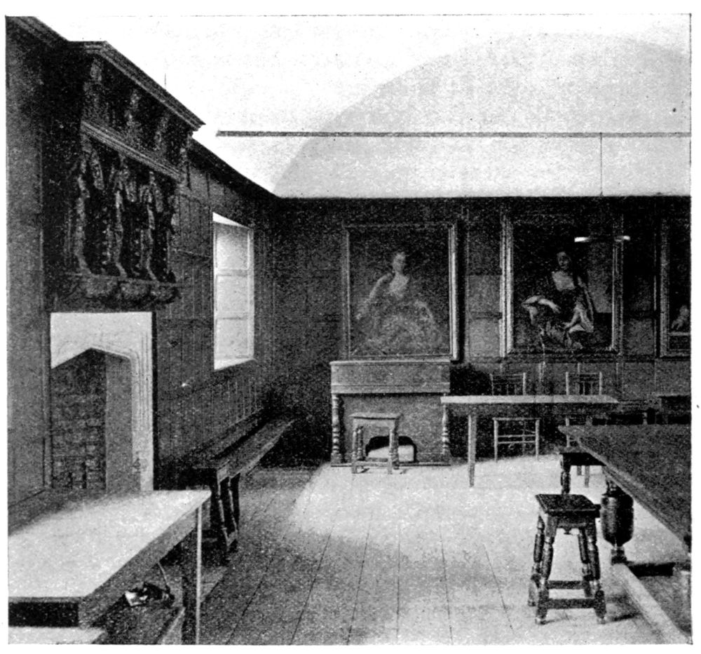 “With regard to the monastic use of this building it was obviously not the common frater of the friars, which here flanked the cloister. There is, however, one mediæval building, of the existence of which there is documentary evidence—‘the Parliament Chamber’—which in all probability is the structure in question. It was the great apartment used for the sittings of two parliaments of Henry VIII., and which also witnessed the trial for the divorce of Catherine of Arragon and Henry VIII. before Cardinals Campeggio and Wolsey.