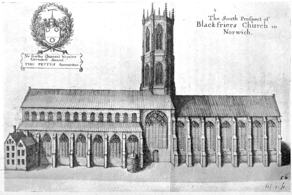 The finest remaining examples of the English preaching nave are the Austin Friars, London (153 ft. by 83 ft.), and the Dominican Church, Norwich, now St. Andrew’s Hall (124 ft. by 64 ft.). Both are distinguished by great space and openness, the former being amongst the broadest churches in the country.