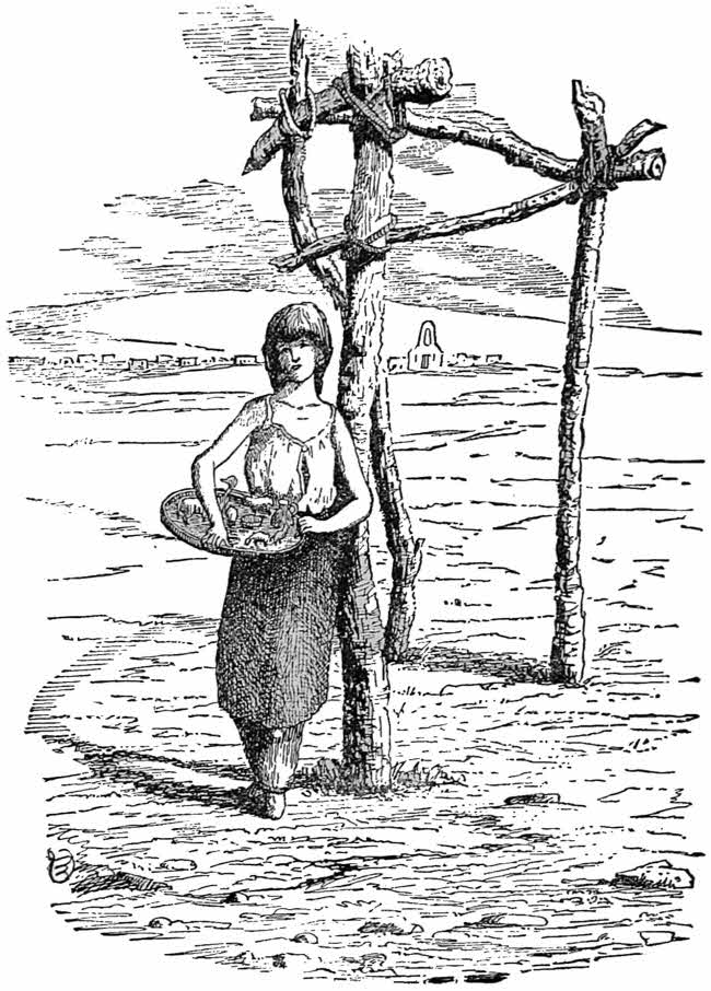 A PUEBLO GIRL SELLING CLAY IMAGES. (From a sketch by Gen. Wallace.)