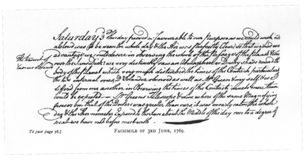3. FACSIMILE OF SATURDAY, 3RD JUNE, 1769.
