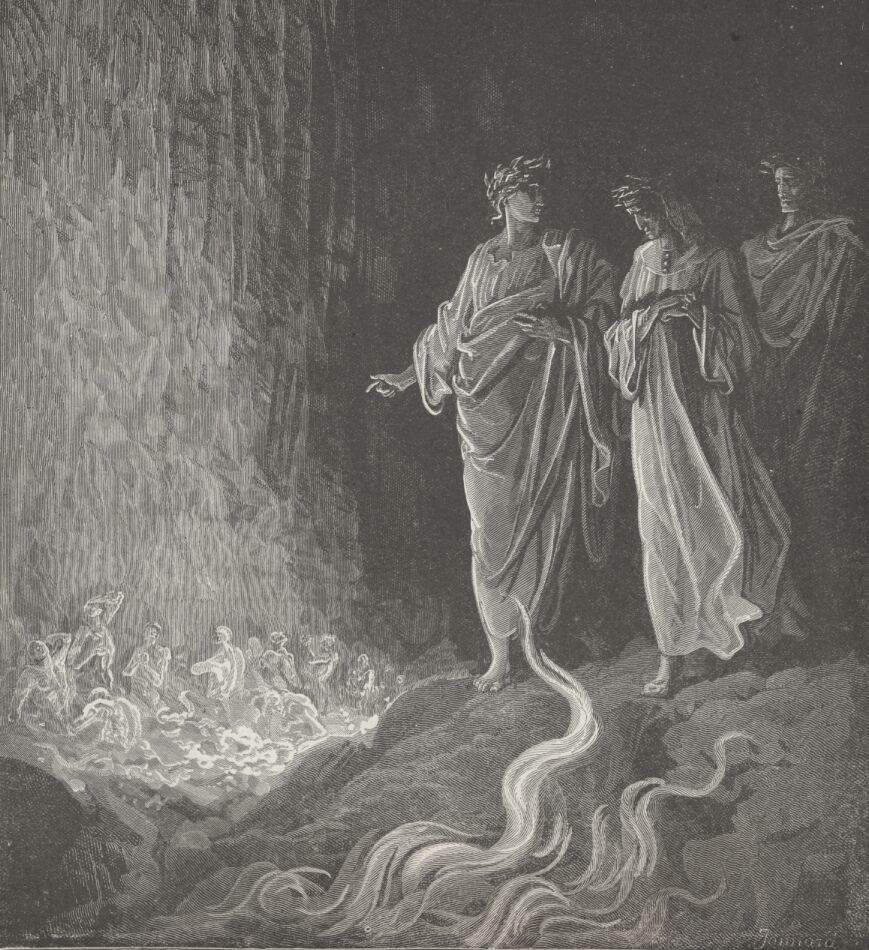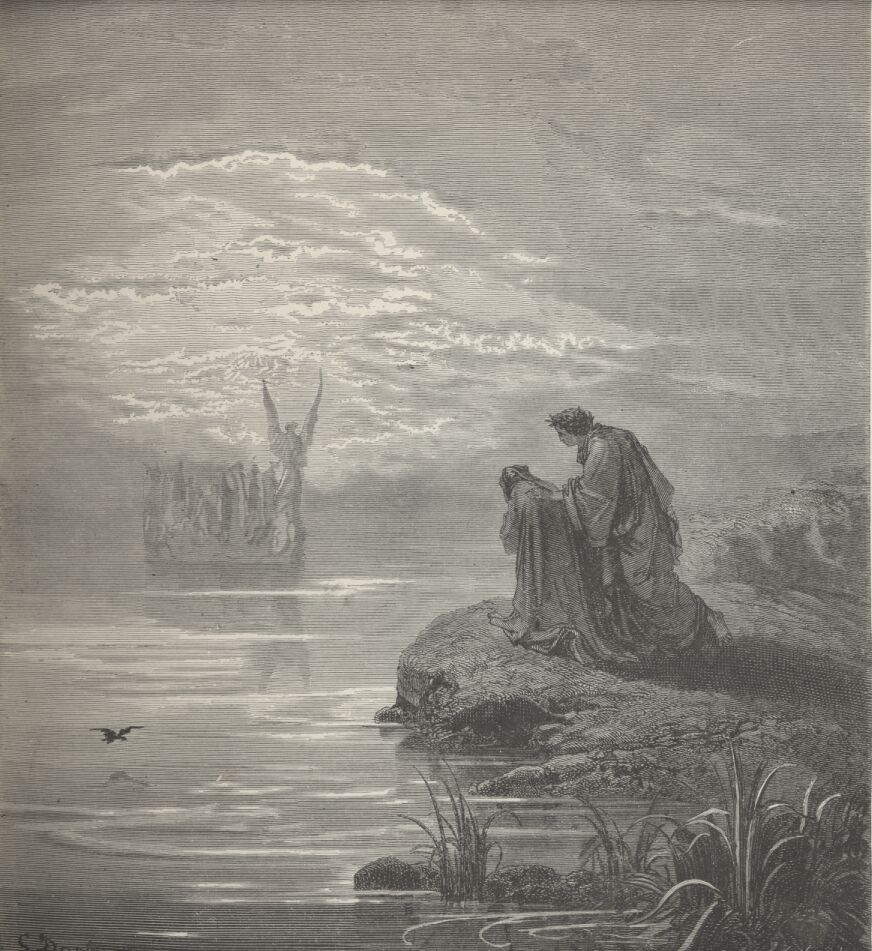 Now that beyond the’ accursed stream she dwells,