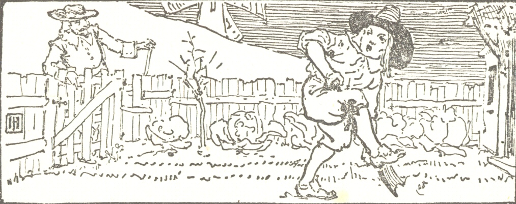 Then all that was left of him was the stick, and this fell down on the back of a Goose who was taking a walk by the side of the ditch.