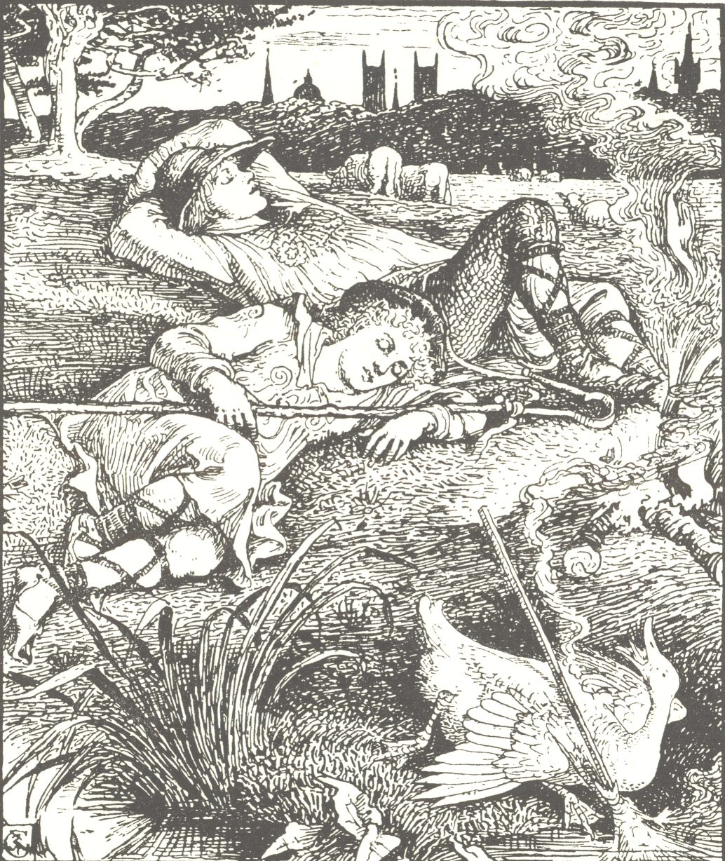 “We will go to sleep now,” they said, “and when we wake up the kettle will be boiled”; and they lay down on the grass, and shut their eyes.
