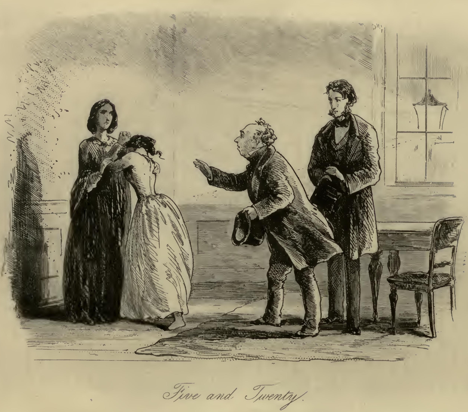 Flora tried in vain to soothe the excellent woman by explaining that they were going home to dinner. Mr F.‘s Aunt persisted in replying, ‘Bring him for’ard and I’ll chuck him out o’ winder!’ Having reiterated this demand an immense number of times, with a sustained glare of defiance at Little Dorrit, Mr F.‘s Aunt folded her arms, and sat down in the corner of the pie-shop parlour; steadfastly refusing to budge until such time as ‘he’ should have been ‘brought for’ard,’ and the chucking portion of his destiny accomplished.