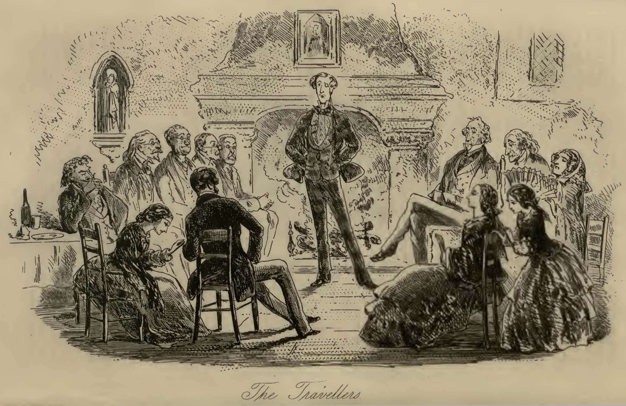 Mr F.‘s Aunt holding out like a grim fortress, and Flora becoming in need of refreshment, a messenger was despatched to the hotel for the tumbler already glanced at, which was afterwards replenished. With the aid of its content, a newspaper, and some skimming of the cream of the pie-stock, Flora got through the remainder of the day in perfect good humour; though occasionally embarrassed by the consequences of an idle rumour which circulated among the credulous infants of the neighbourhood, to the effect that an old lady had sold herself to the pie-shop to be made up, and was then sitting in the pie-shop parlour, declining to complete her contract. This attracted so many young persons of both sexes, and, when the shades of evening began to fall, occasioned so much interruption to the business, that the merchant became very pressing in his proposals that Mr F.‘s Aunt should be removed. A conveyance was accordingly brought to the door, which, by the joint efforts of the merchant and Flora, this remarkable woman was at last induced to enter; though not without even then putting her head out of the window, and demanding to have him ‘brought for’ard’ for the purpose originally mentioned. As she was observed at this time to direct baleful glances towards the Marshalsea, it has been supposed that this admirably consistent female intended by ‘him,’ Arthur Clennam. This, however, is mere speculation; who the person was, who, for the satisfaction of Mr F.‘s Aunt’s mind, ought to have been brought forward and never was brought forward, will never be positively known.